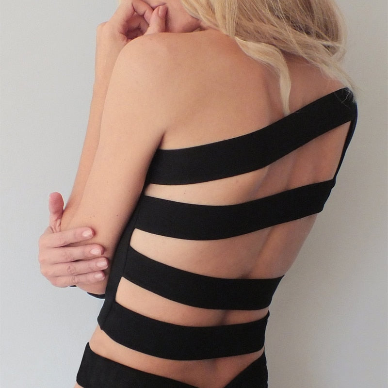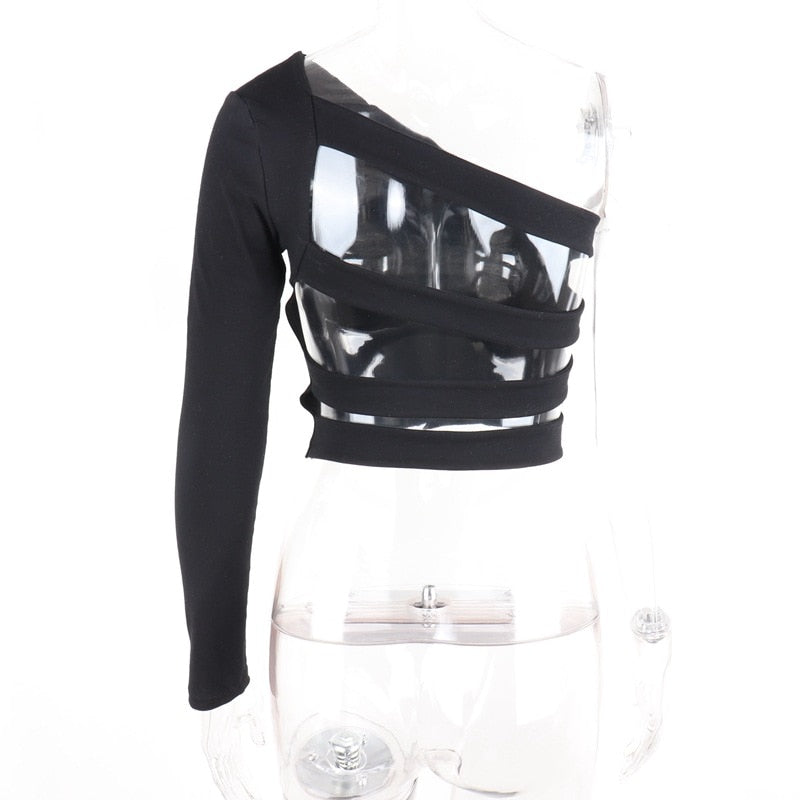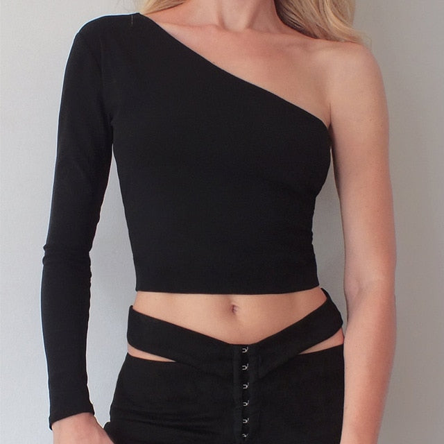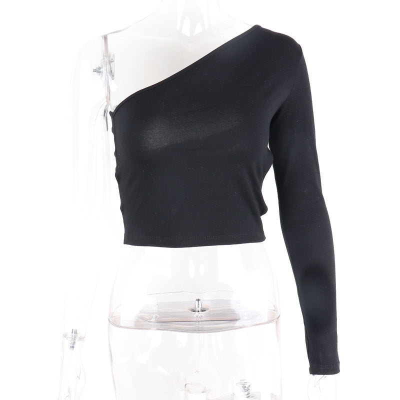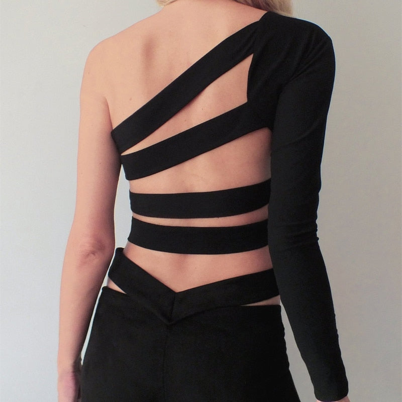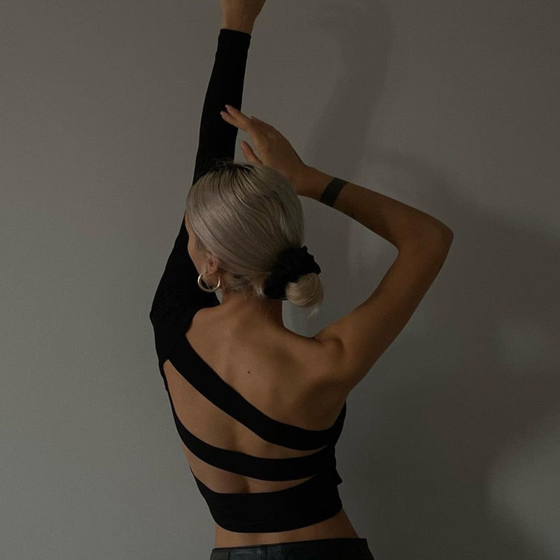 Camiseta de un solo hombro sin espalda con material de poliéster