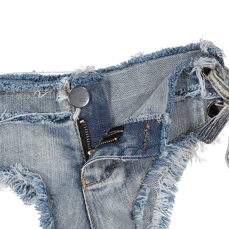 Vaqueros cortos sólidos de corte ceñido con adorno de cordones laterales, cierre de botón, estilo de cintura baja y material de algodón
