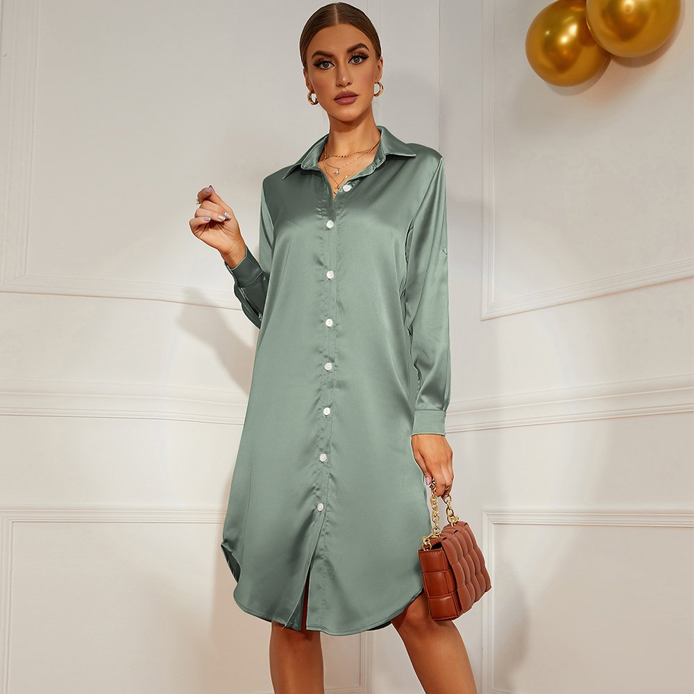 The fabric of this midi dress is soft and comfortable. The loose-fitting design is flattering. The button and turn-down collar are also simple yet elegant. It is available in many colors and is perfect for a casual day out.