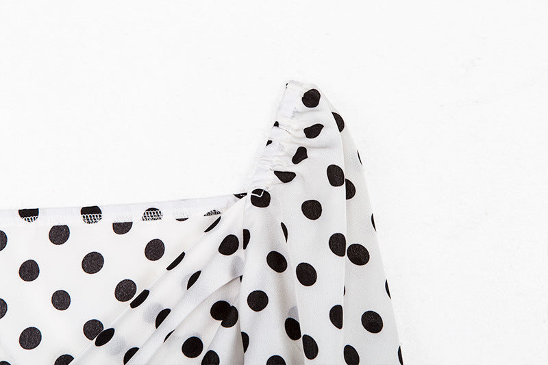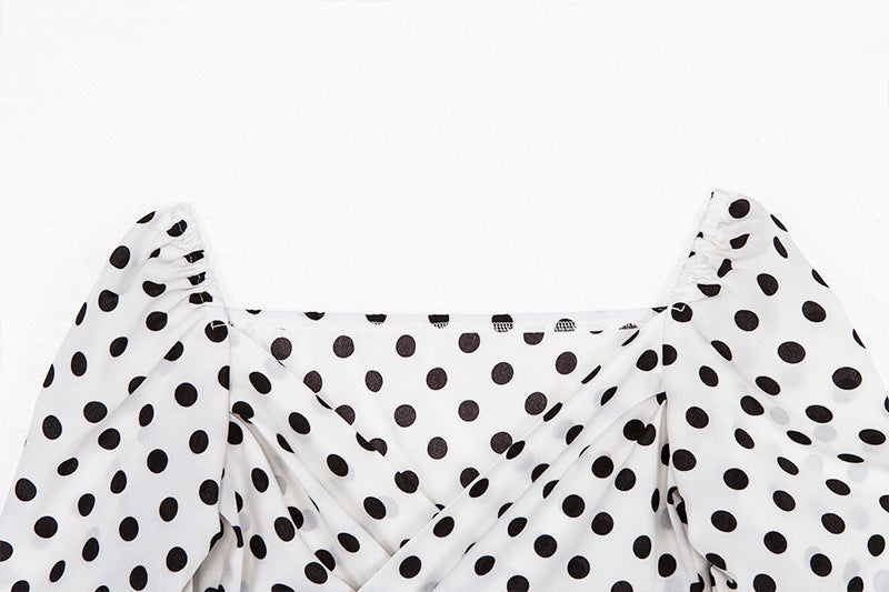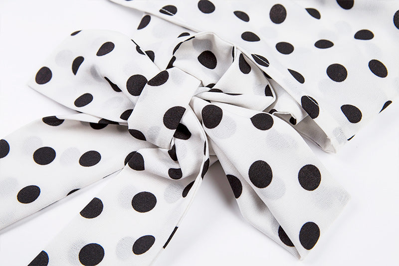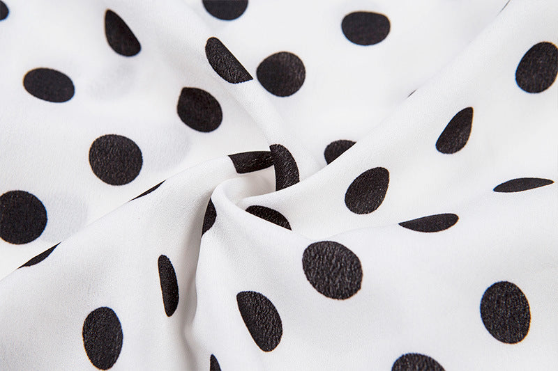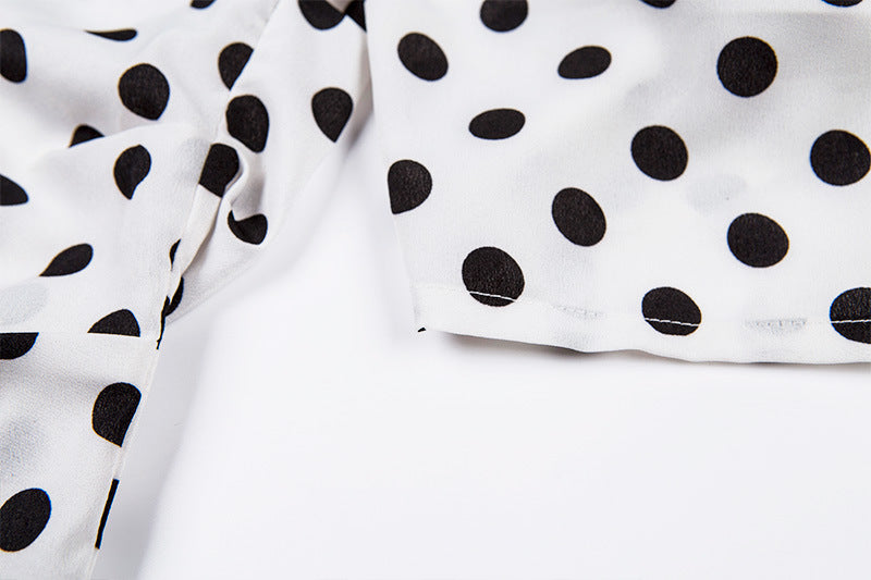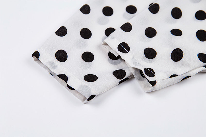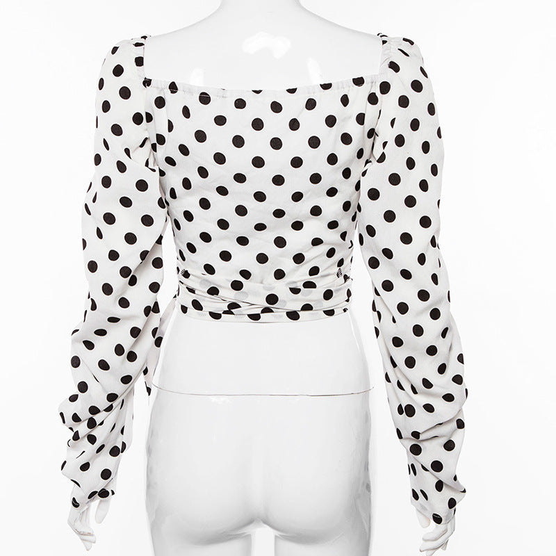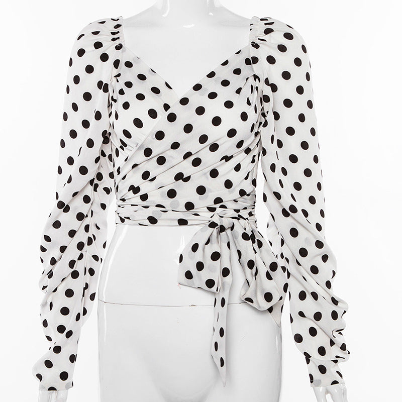 Blusas de mujer de manga larga con cuello en V y lunares vintage
