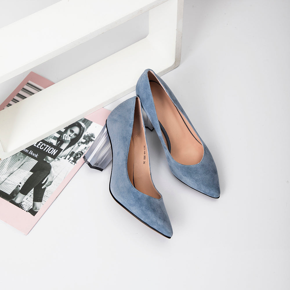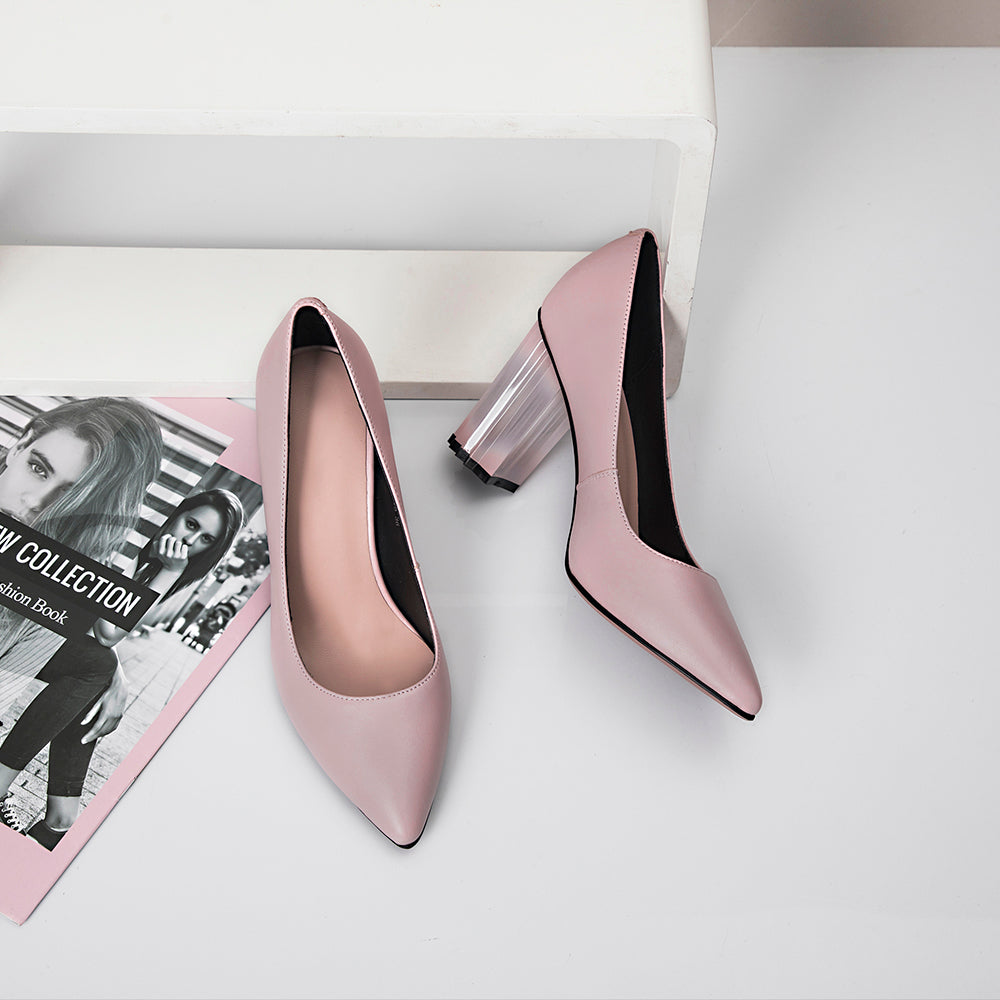 Zapatos de salón sin cordones de piel de oveja genuina sólida con tacones gruesos únicos
