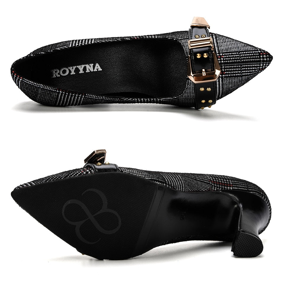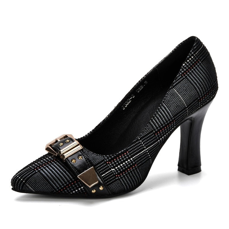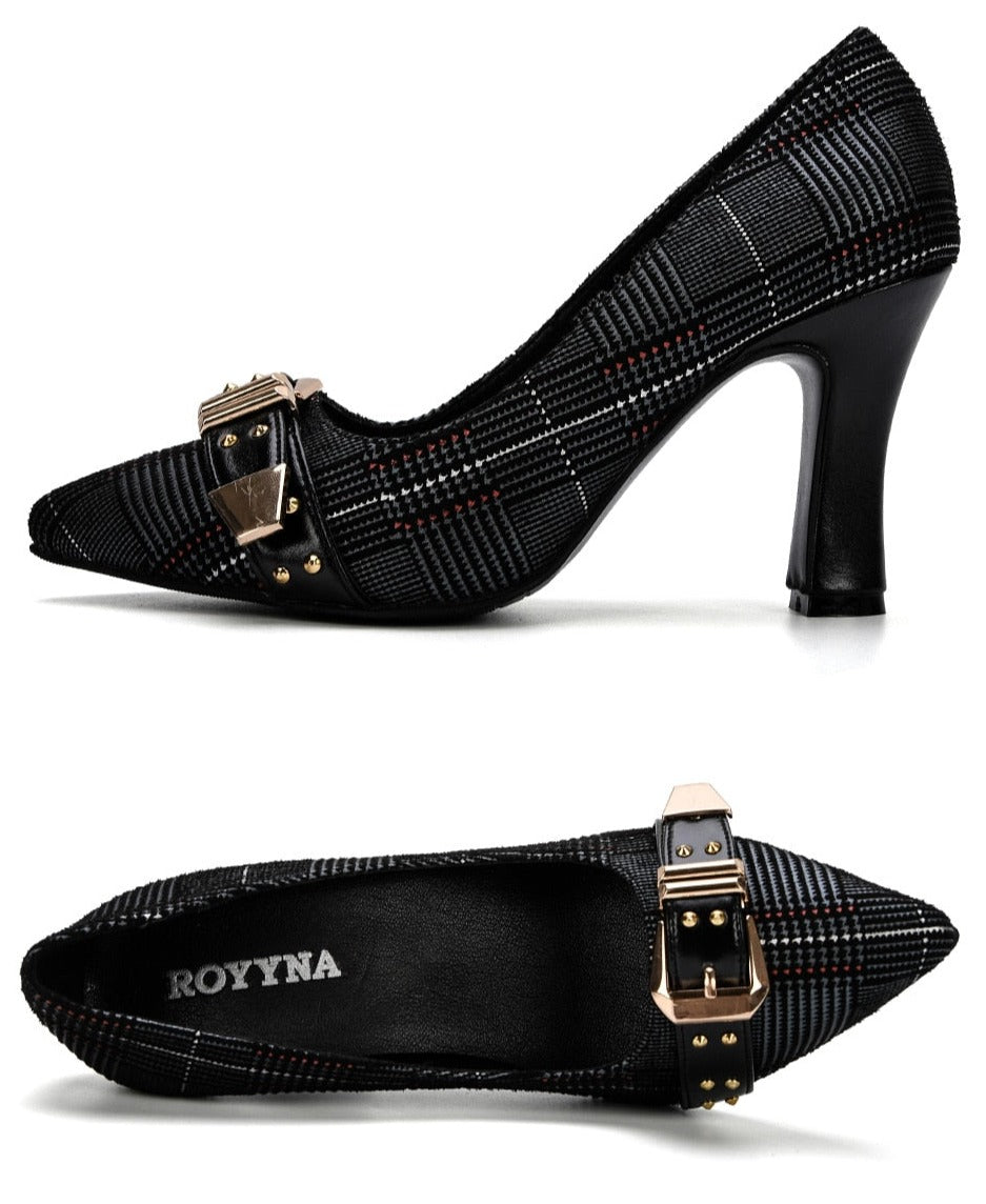 These pumps are perfect for any day of the week, whether you're going for a casual look or a more dressy one. The pumps are made of a quality material that will keep your feet comfortable throughout the day. The full plaid pattern also gives off a classic vibe that keeps you in an everlasting style.