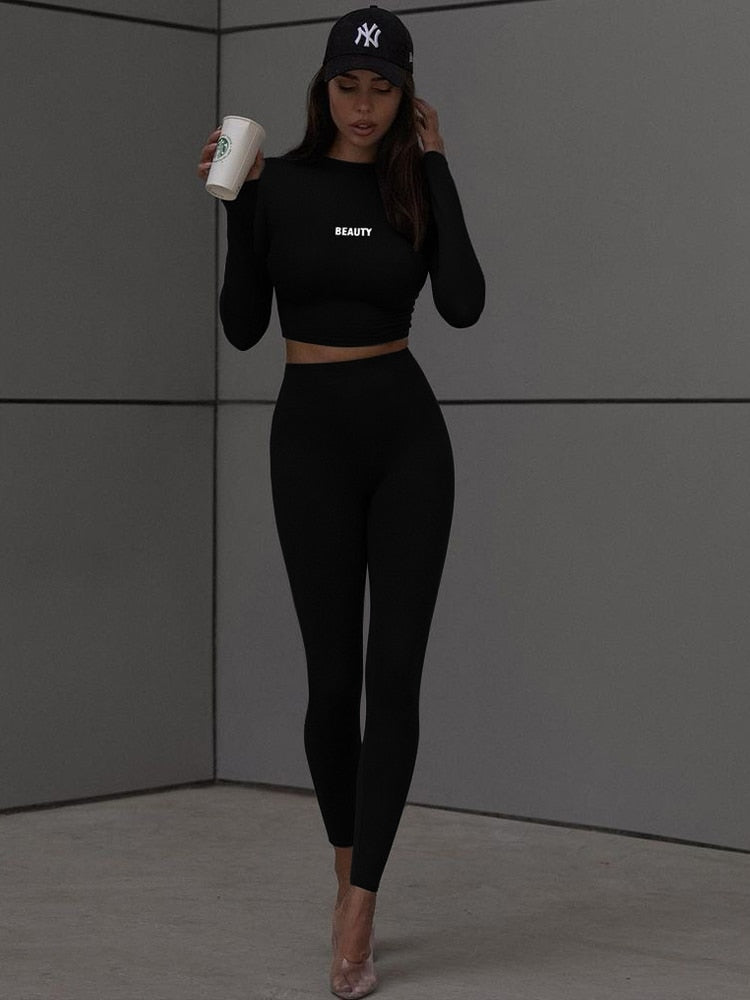 Look and feel your best with stylish active wear that's designed to be both functional and fashionable. This women's top and bottom workout set is perfect for both fitness and fitness enthusiasts. The high waist allows for a comfortable fit, while the spandex fabric provides support and flexibility.