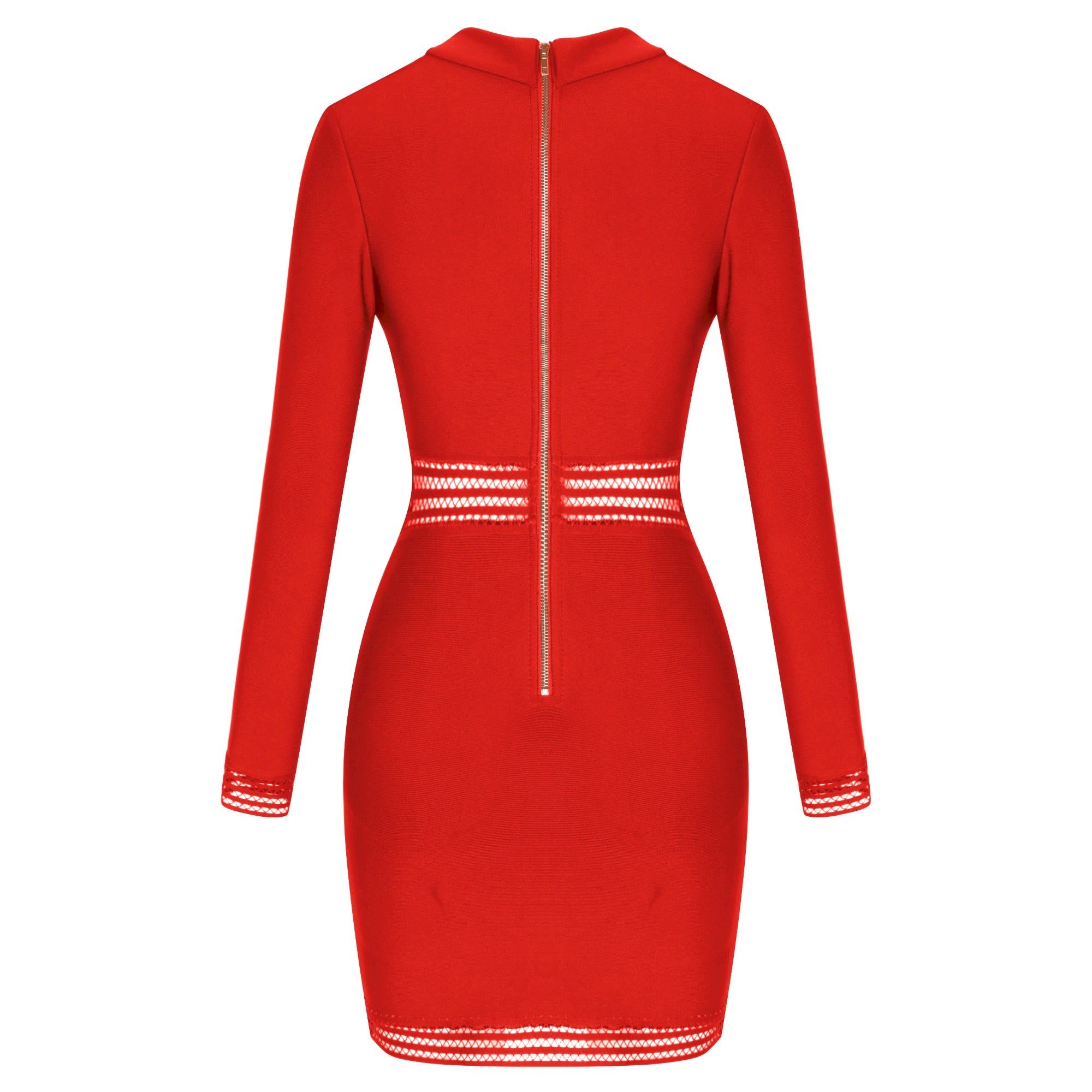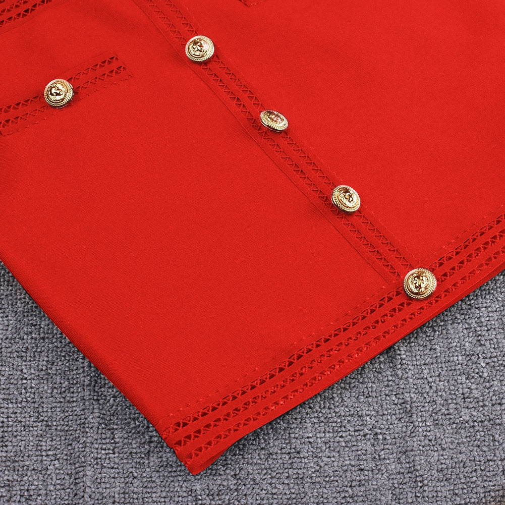 Minivestido de manga larga con cuello en V con decoración de botones, cierre de cremallera y material de poliéster