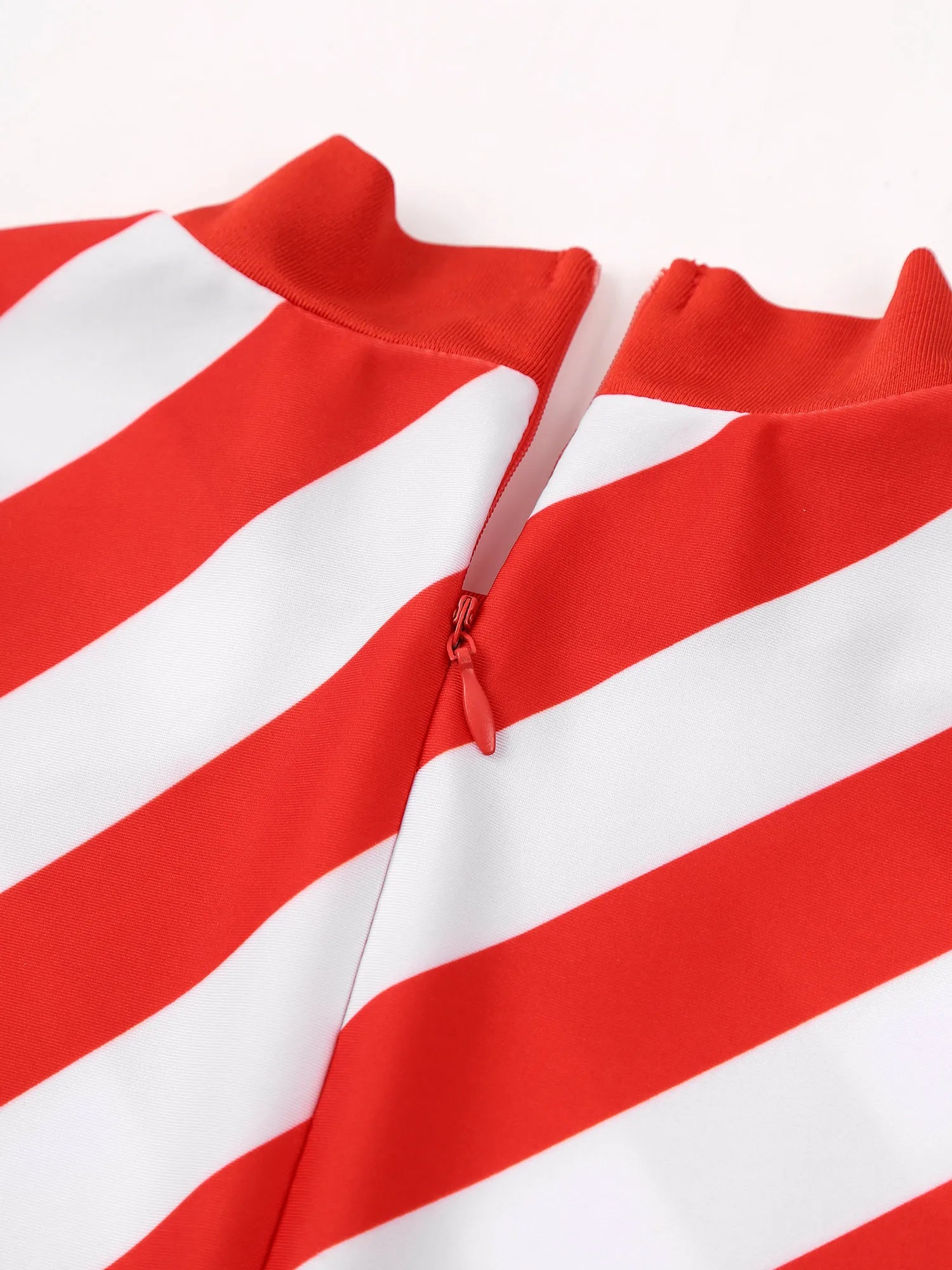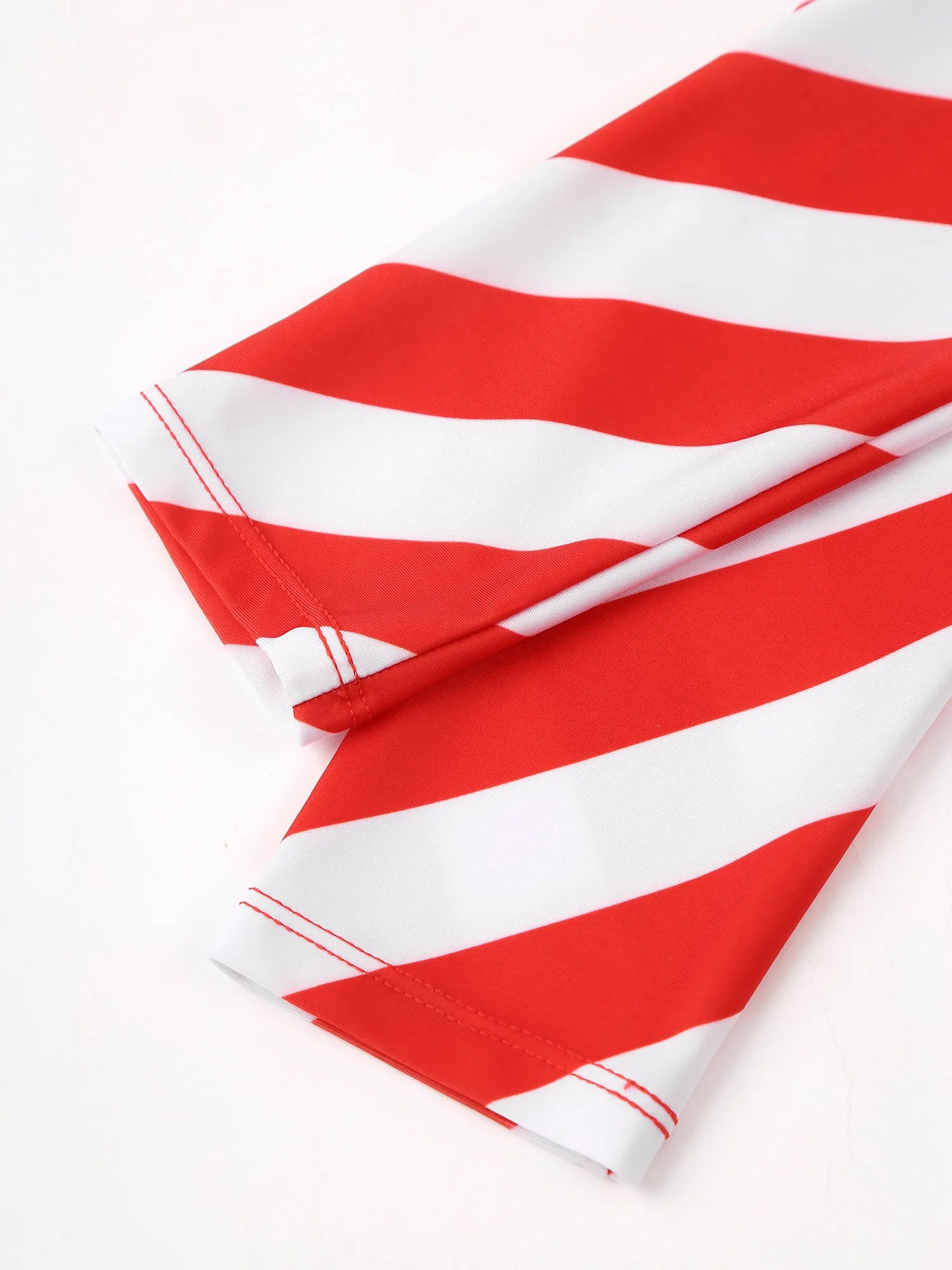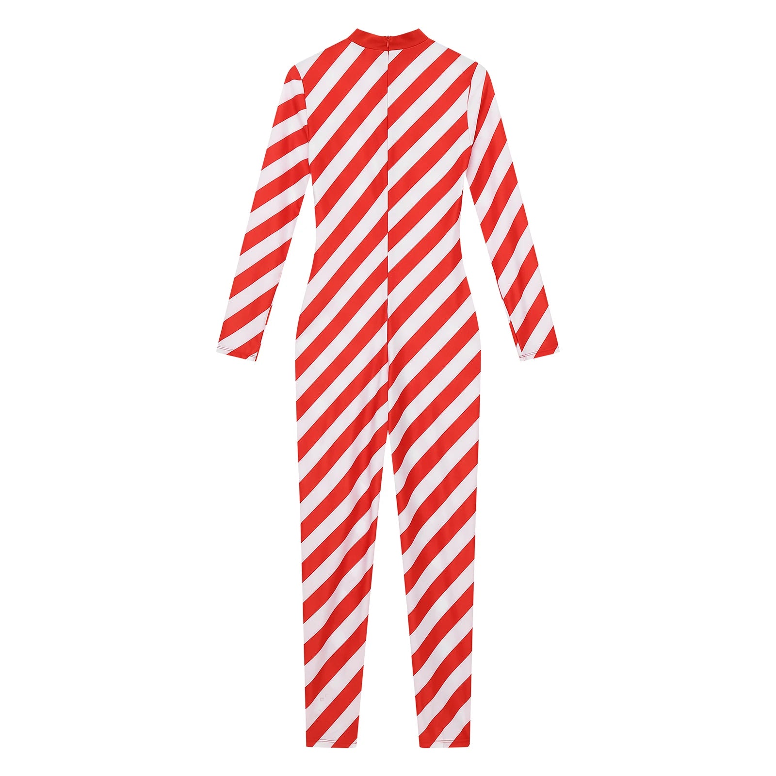 This classic, striped jumpsuit is made of comfortable Spandex for a festive, festive look. It features a full-length sleeve and a convenient zipper closure. Perfect for holiday parties or a cozy family get-together.