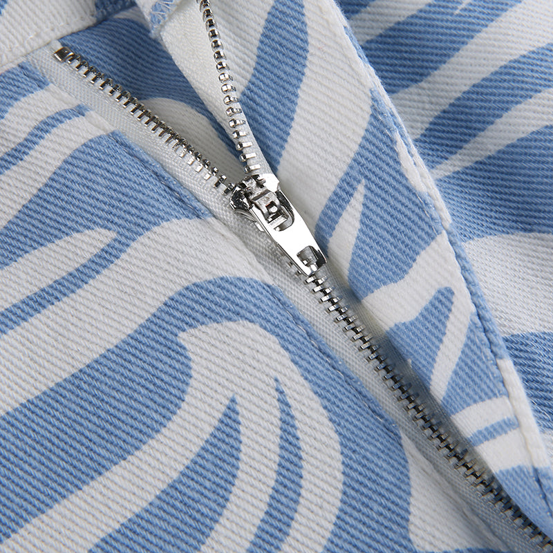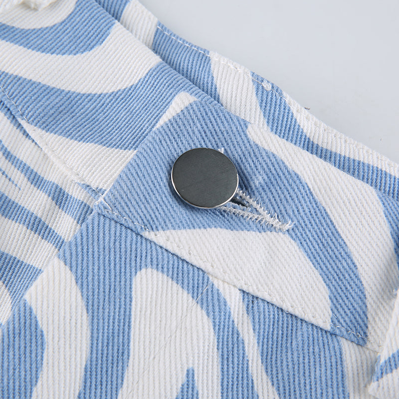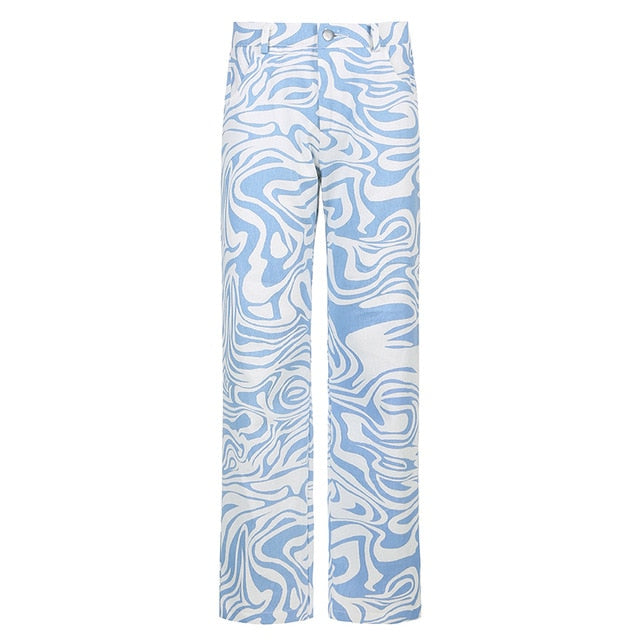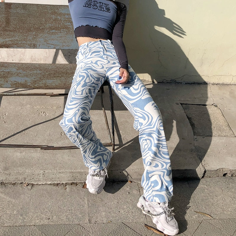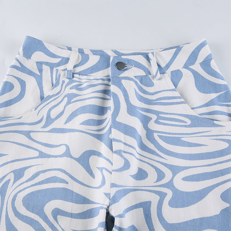 Vaqueros rectos con patrón de ondas geométricas hechos de material de algodón